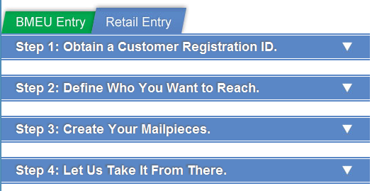 If your mailing does not meet the criteria for Every Door Direct Mail Retail, choose the BMEU (Business Mail Entry Unit) Entry tab.