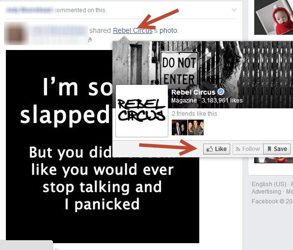 Here is an example from my Facebook News Feed. This post is from a magazine called Rebel Circus. I don’t follow them (I haven’t liked their page) on Facebook, but because one of my friends commented on it, it showed up in my news feed this morning:
