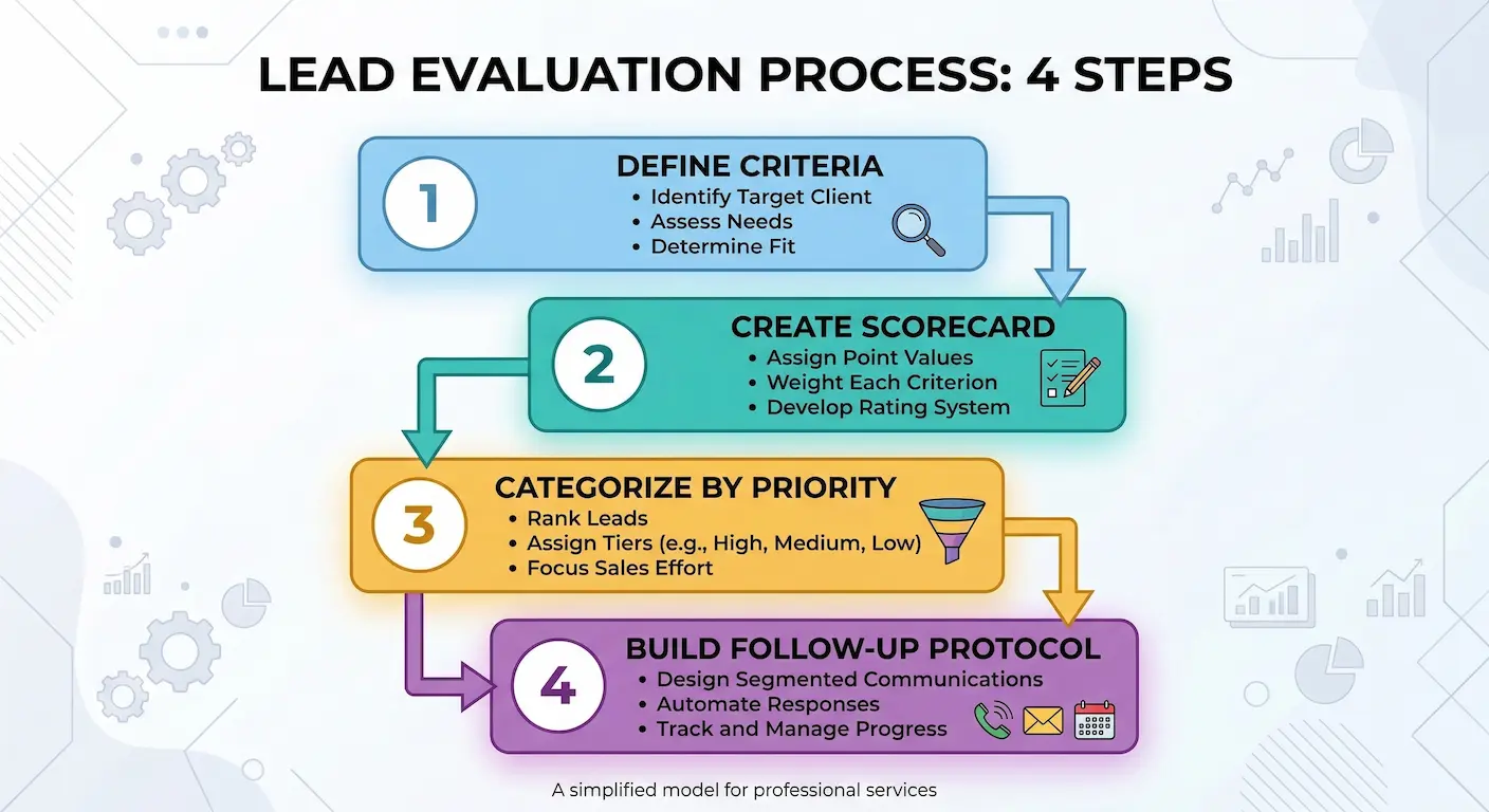 I call this the Lead Evaluation Framework: a simple, process-based approach to qualifying and prioritizing leads that fits the way boutique firms actually operate.